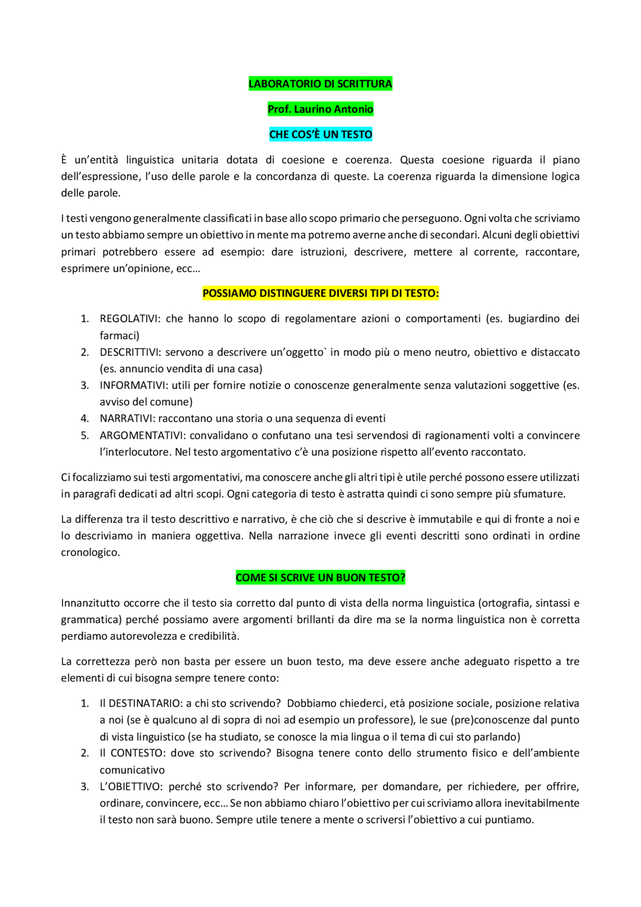 PDF Argomentare - Pearson Individua quale tra i seguenti testi è un testo argomentativo. Elenca i temi su cui ti capita più spesso di argomentare; ti suggeriamo qualche esem-pio. Spiega anche, per ogni tema, con chi ti capita di argomentare. 1. Riordinare la stanza. 2. Apparecchiare la tavola. 3. Fare i compiti subito dopo mangiato. 4. Studiare di più. 5. Non uscire ... Testo informativo - espositivo, argomentativo e regolativo - Skuola.net Il testo argomentativo è un testo in cui chi scrive presenta, in relazione a un determinato problema, la propria opinione o tesi, sostenendola con opportuni elementi di prova o argomenti.
